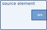 Source element는 파이프라인에서 사용할 데이터 (예를 들면 디스크 또는 사운드 카드에서 읽기)를 생성합니다. 아래 Source element의 이미지는 source element를 시각화한 것 입니다. 항상 element의 오른쪽에 source pad를 그립니다.