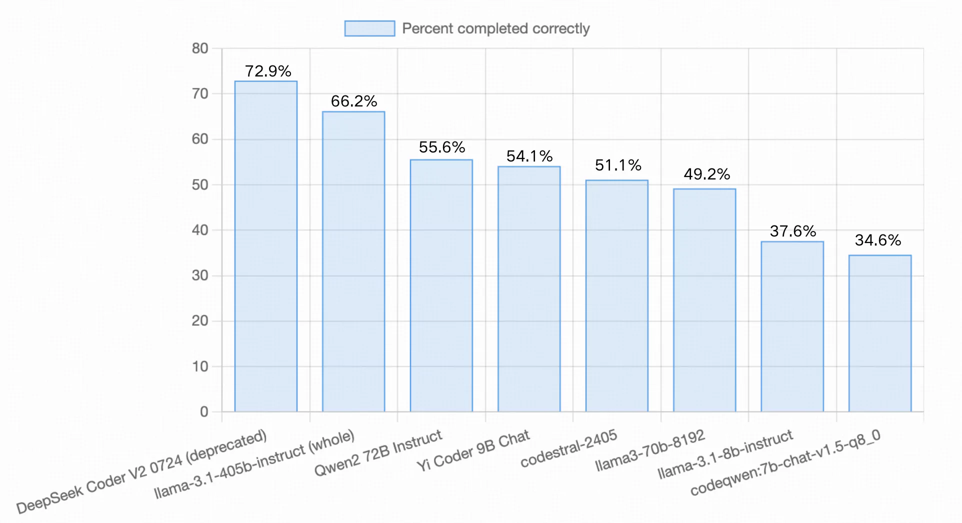 Aider의 코드 편집 벤치마크는 Exercism에서 얻은 133개 코딩 연습에서 Python 소스 파일을 수정하는 LLM의 능력을 평가합니다. 이 평가는 모델의 새로운 코드 생성 능력을 테스트할 뿐만 아니라 해당 코드를 기존 코드베이스에 원활하게 통합하는 능력도 결정합니다. 또한 모델은 프로세스 중에 인간의 안내가 필요 없이 모든 변경 사항을 자율적으로 적용해야 합니다.