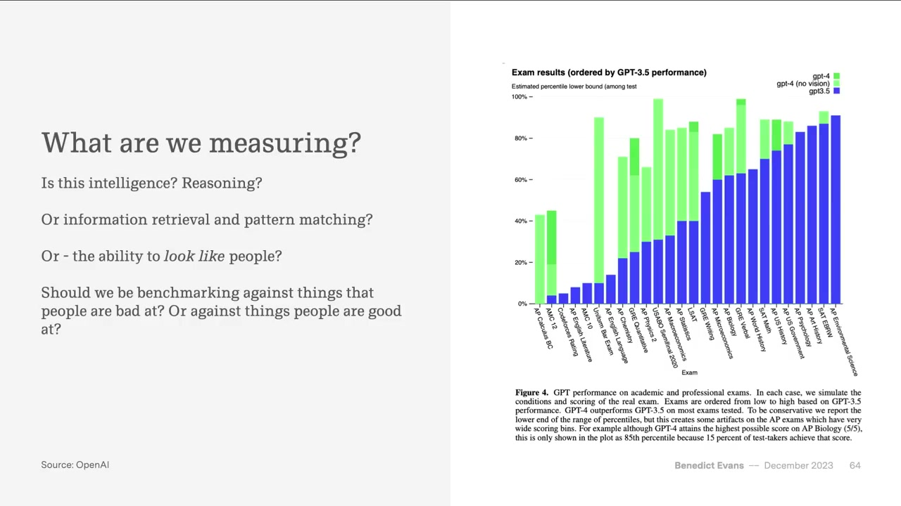 - ChatGPT를 측정할 때, 우리는 지능을 보고 있는 건가? 정보 검색을 보고 있는 건가? 인간 같이 보이는 능력을 보고 있는 건가?