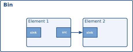 위의 예에서 bin에는 이제 pad가 있습니다. 해당 pad는 주어진 element의 "sink"라고 합니다. 이제부터는 bin을 sink element 대신 사용할 수 있습니다. 예를 들어 다른 element를 이 bin에 연결할 수 있습니다.