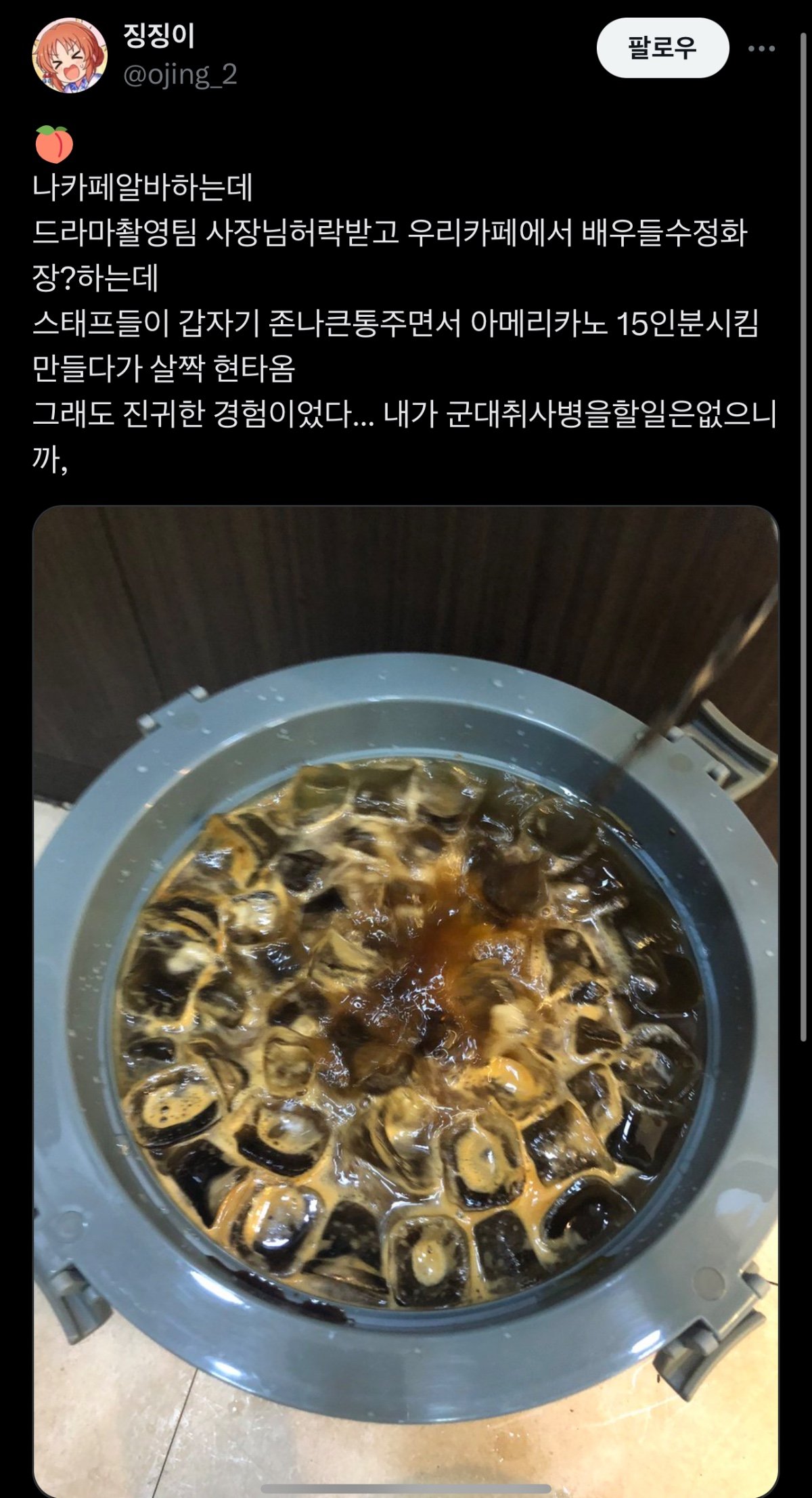 취사병도 커피를 저렇게 만들지는 않을 것 같은데
